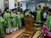 По окончании богослужения был совершен молебен преподобному Серафиму Саровскому, перед его иконой, а затем Владыка окропил молящихся святой водой.