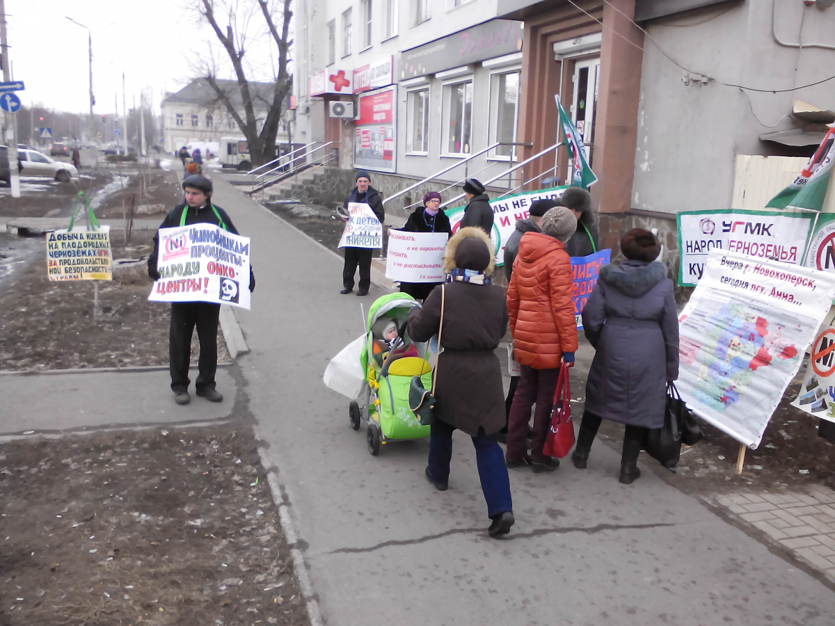 21 февраля в Борисоглебске прошел очередной пикет против проекта добычи никеля в Новохоперском районе. Организаторами пикета выступили активисты движения «Стоп, никель!», при поддержке Борисоглебского отделения КПРФ. Мероприятие было согласовано с администрацией округа. В течение четырех часов частники пикета стояли на центральной улице Борисоглебска с плакатами следующего содержания: